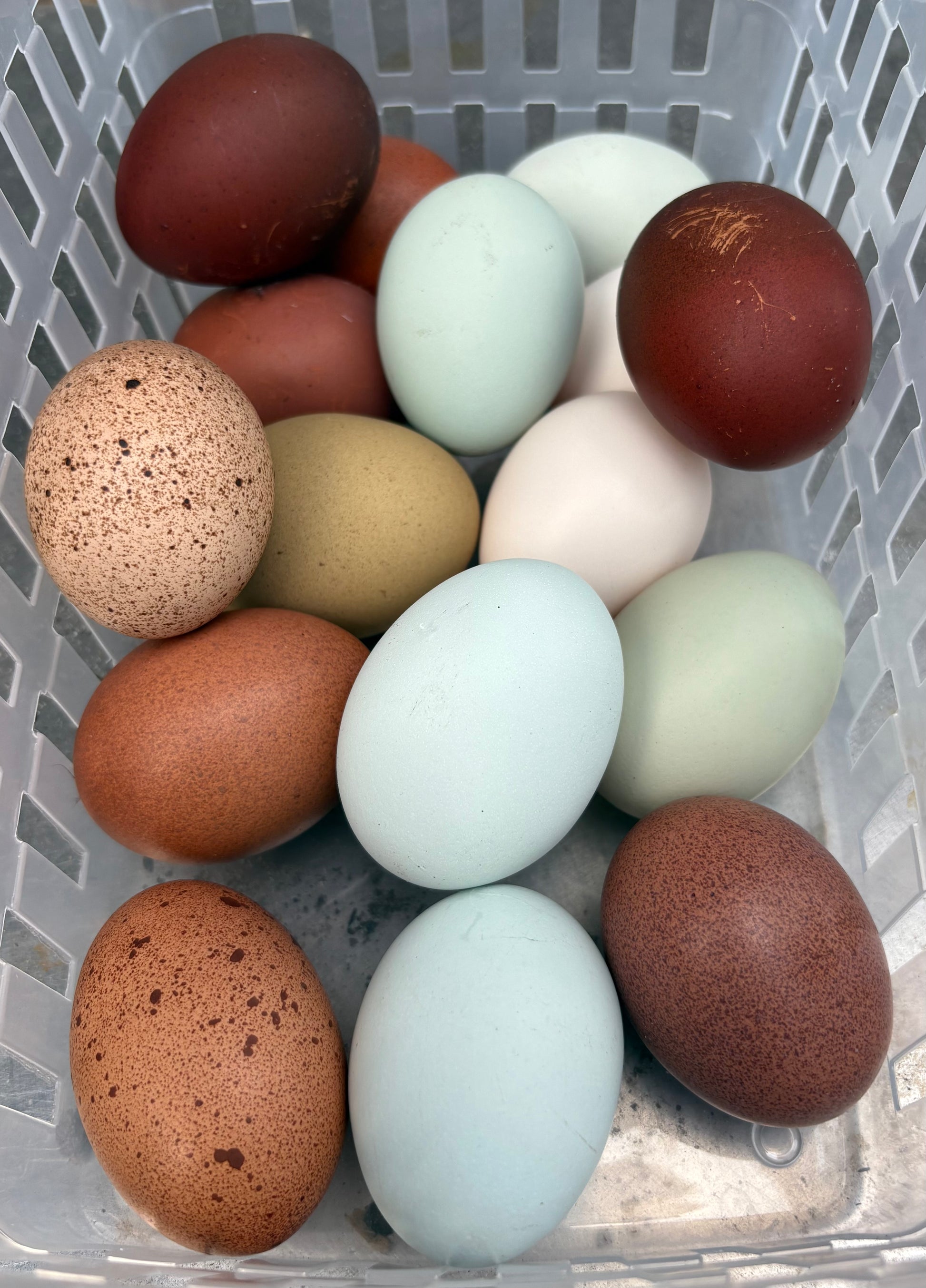 1 Dozen (12) Fresh Rainbow Hatching Eggs. Includes 2-3 of each Breed listed below for maximum rainbow color.