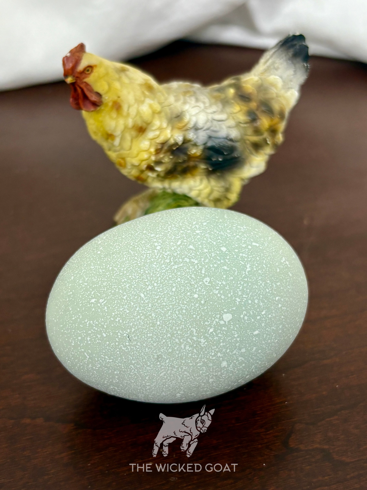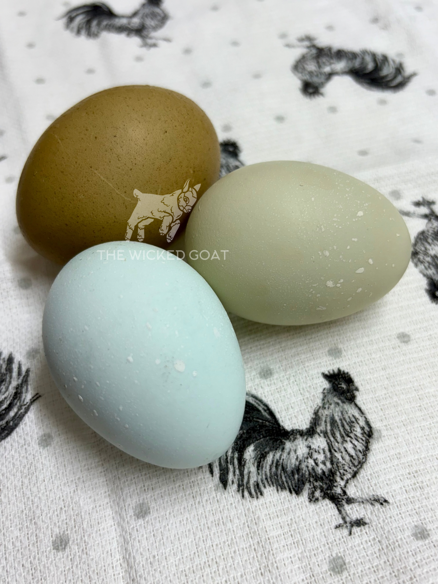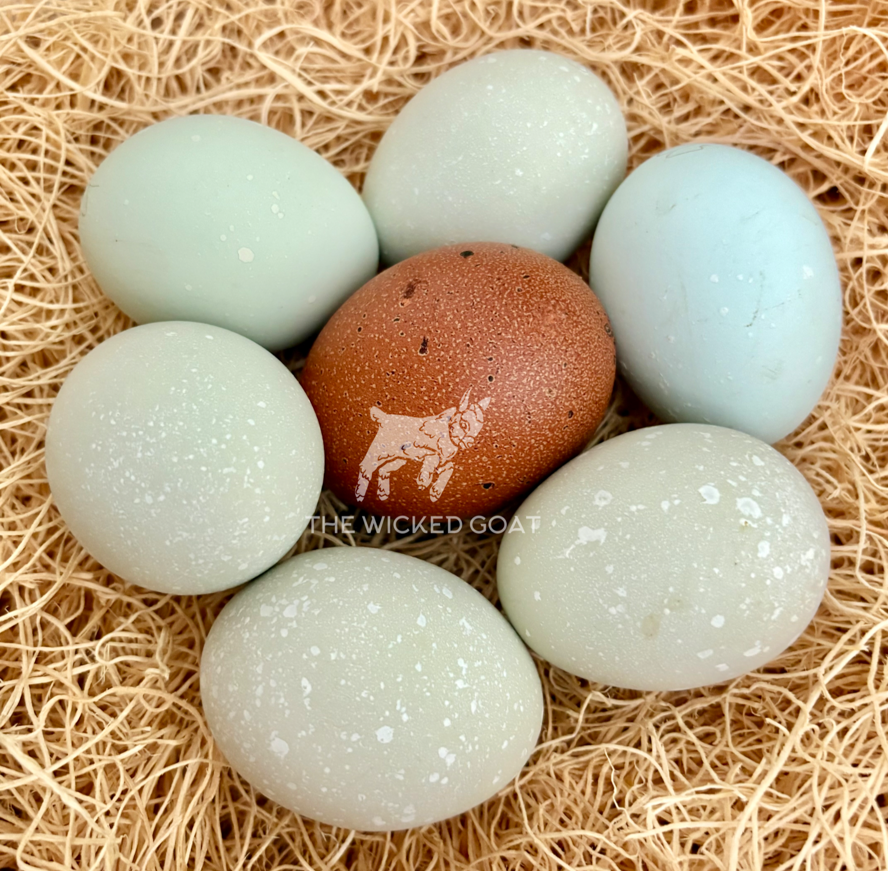 Our own creation, Wicked Polka Dots lay crazy speckled eggs. From Blues, Greens, Olives, Grays with white, brown or purple speckles. Defiantly a must have for your rainbow basket. These chicks are sold as Straight Run, meaning their sex cannot be determined at hatch. Chicks are 3-5 days old.